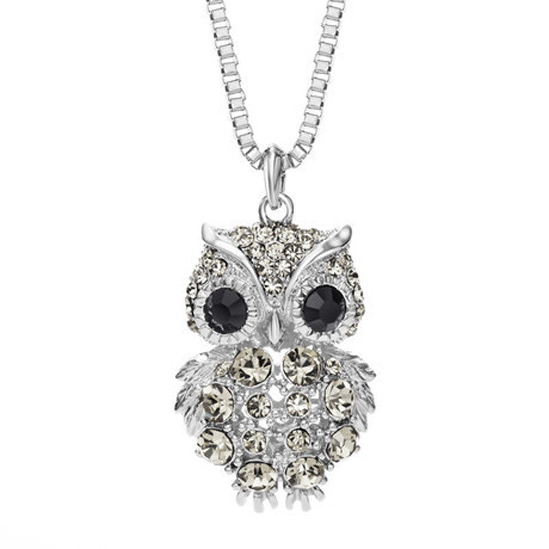 Retro Antique Alloy with Rhinestone Crystal Owl Long Necklace GD